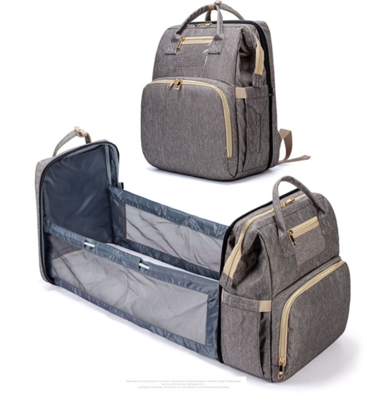 The diaper bag with bassinet hidden a foldable crib which could be extend into a bed and provide a safe and hygienic space for you to change diapers. Let your baby rest anytime, anywhere when your baby is tired and save you from having to take a bassinet or asking hotel for a crib.This baby bag is a powerhouse for traveling because it serves as baby diaper organizer, feeding breast milk storage, portable bassinet, travel crib and changing station.